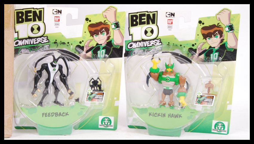 An shop stock box of 11x Giochi Preziosi made Ben 10 carded action figures to include; Rook, Fourarms, Gravattack, Shocksquatch & others. All on sealed on their original carded backs.