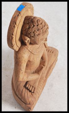 A large 19th century Oriental Chinese  floor standing terracotta Buddha modelled in the lotus position with hand raised. Good detailing and features.