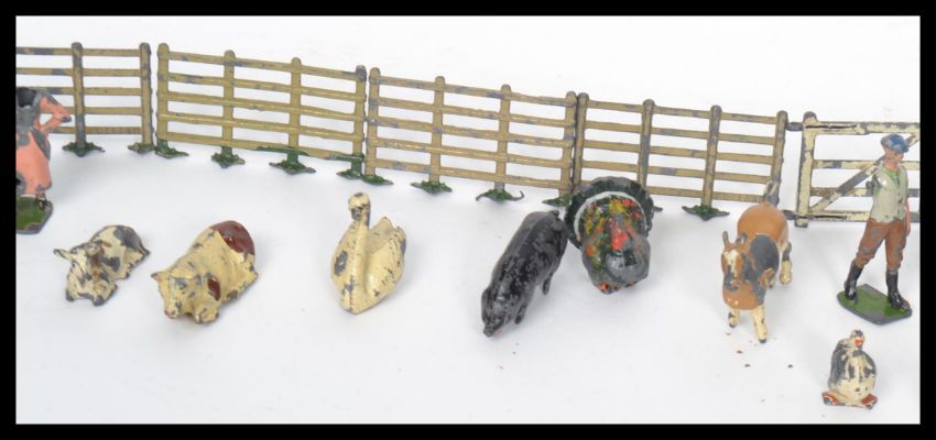 A collection of vintage lead figures by Britain's mainly farmyard animals and associated farmyard items.