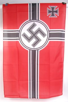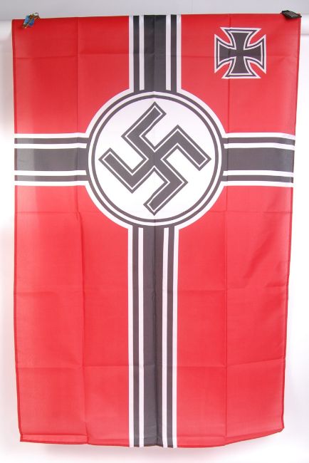 A 20th century reproduction Nazi German Third Reich Kriegsmarine / Naval flag with large central swastika with white & black bands. Measures approx 157cm x 88cm.