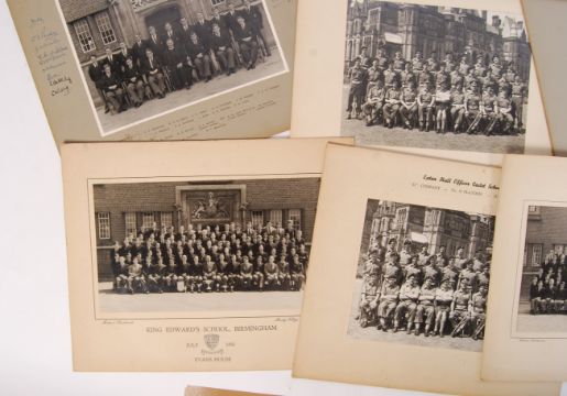 A collection of 7x vintage c1950's photographs, largely relating to King Edward's School in Birmingham (but some others), many with sporting interest. Comprising of 1953 Cricket team, a group photograph of ' D Company, No. 19 Platoon' at Eaton Hall Officer Cadet School, 1955 King Edward's Rugby Team, and various others. All measuring approx; 10" x 12"