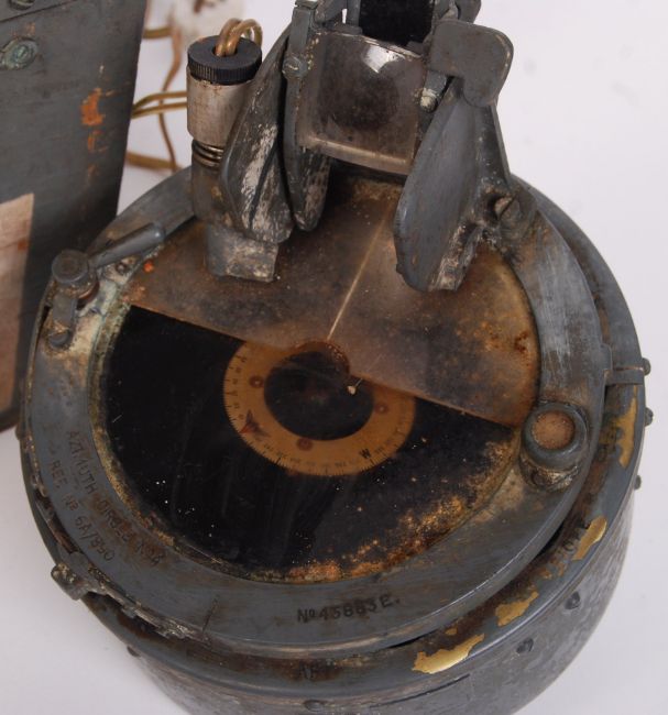 An original vintage WWII Second World War period RAF Royal Air Force navigational aircraft compass ' Azimuth Circle No. 4 '. 6A/890 code to facia. Compasses of this make were fitted to both Lancaster and Halifax Bombers. Present within its original Air Ministry wooden box.