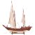 A large and impressive vintage hand made wooden model Dhow / Arabian Sailing Ship. Rigged with cotton sails, and large amounts of detail. Largely wood, with some detailing being hand carved. On stand. Plaque affixed to centre noting 'Presented By Engineering Staff, Kuwait Oil Company, To JW Lowdon, On His Retirement, 1956.' Measures approx; 94cm tall (to mast tip), 117cm long.
