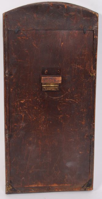 An unusual antique likely WWI First World War era brass bound mirror. Possibly from a ship's cabin or similar. Brass bound, with inset ' The Royal Navy ' cap badge to top. Measures approx; 37cm x 18cm.