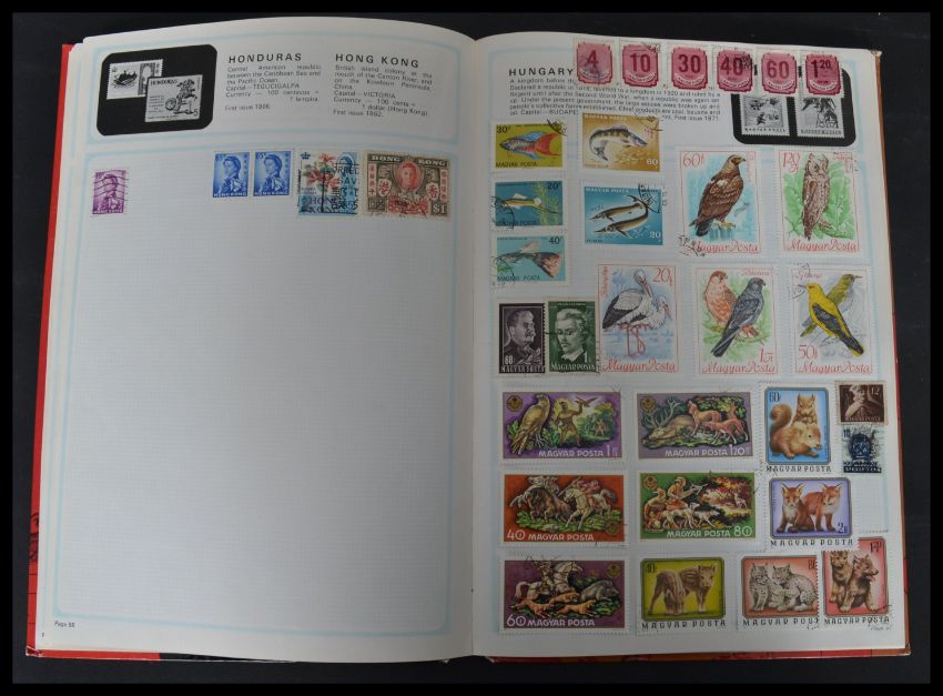 A Stanley Gibbons Adventure stamp album containing various 20th century World stamps along with another stamp and map book with 20th century World stamps. Please see images,