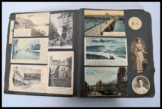 PHOTOGRAPH ALBUM.Exceptional original family collection from 1902-1920s.Packed with photos and postcards with European & UK travels inc Cornwall (Port Isaac, Port Gaverne), Isle of Man, Devon. Very interesting documentary with good Social History and Topographical content.Connections to families of Rimington (Sale) & Wilkinson (Birkenhead).