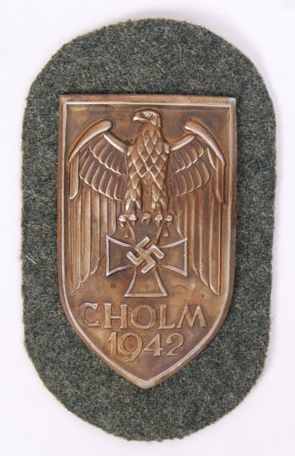 A 20th century Nazi German Third Reich ' Cholm 1942 ' campaign arm shield with eagle & swastika to front.