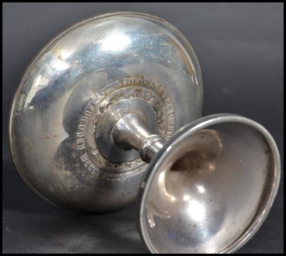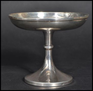 An early 20th century silver hallmarked tazza having a Masonic Crest - Worshipful Company od Joiners. Hallmarked for Birmingham 1933 makers Deakin and Francis. Weighs 58 grams. Measures 8 cm high.