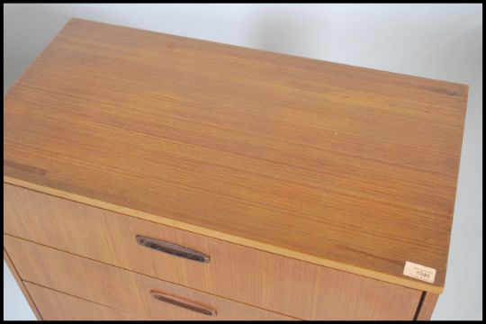 A vintage retro 20th century Danish inspire teak chest of drawers. The bank of drawers having three straight drawers. Measures  70cm x 76cm x 40cm.