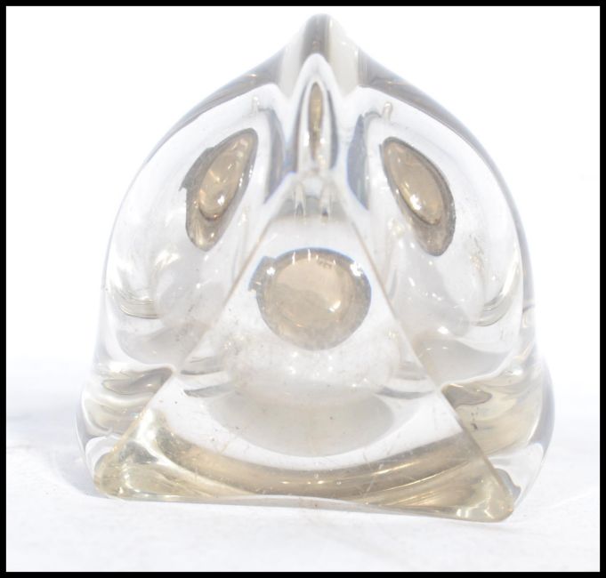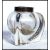 A silver hallmarked glass desk top inkwell of unusual bulbous glass form having silver collar and hinged lid. The silver hallmarks partially legible for Birmingham, date letter C. Measures 8 cm high.