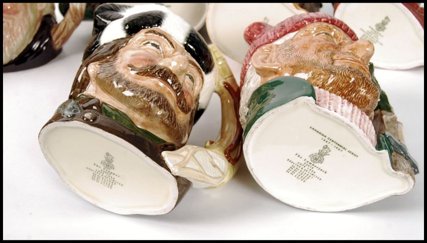 A group of four Royal Doulton character jugs to include Romeo D6670 Macbeth D6677 Hamlet D6672 and William Shakespeare D6689. Measures 19cms high. Note; from an extensive private collection of Royal Doulton. The vast majority of items are free from any damage or restoration, and are in great condition. Buyers are reminded for the need to satisfy themselves as to condition of individual lots prior to bidding as condition on some, will vary.