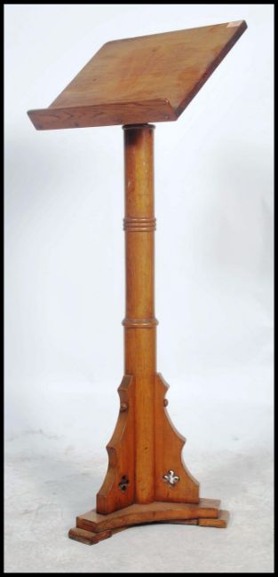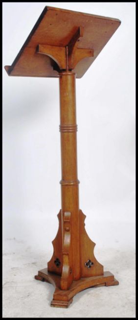 A good believed 19th century carved oak Church lecturn reading stand. The top with angular top and reading ledge set over adjustable height turned column and base