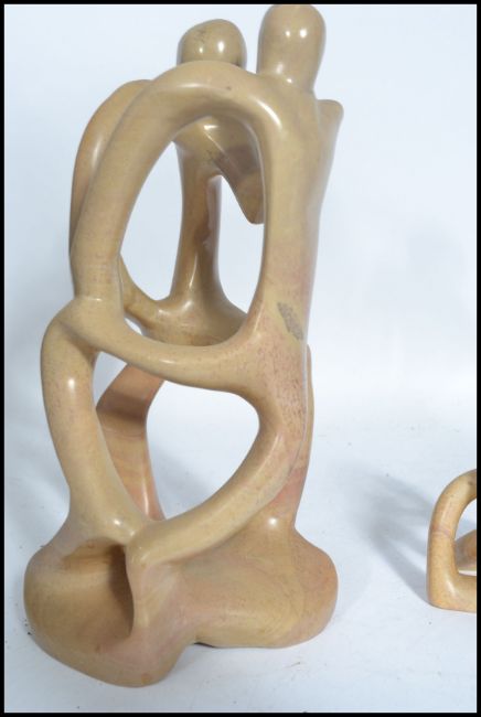 Two vintage 20th century stone carvings sculpture statue one in the form of a couple and the other in the form of a Devil's Work knot. Please see images.