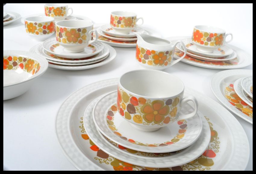 A retro 20th century part dinner service ' The Young Range ' by Pontessa Spain, consisting plates, side plates, cups, saucers etc please refer to images.