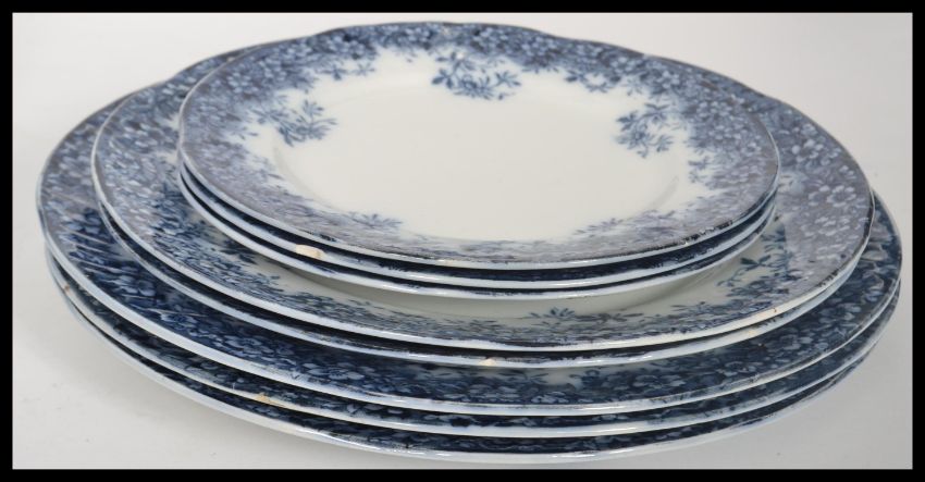 A 19th century blue and white Victorian Staffordshire part dinner service stamped to the base Booths Royal Siam Canterbury pattern