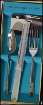 A 19th century cased vanity necessaire set having various needles picks glove stretcher etc along with a 19th century Murano glass hat stick pin a boxed Hohner Band Harmonica two cased sets of cutlery etc. Please see images. Longest measures 18 cm.