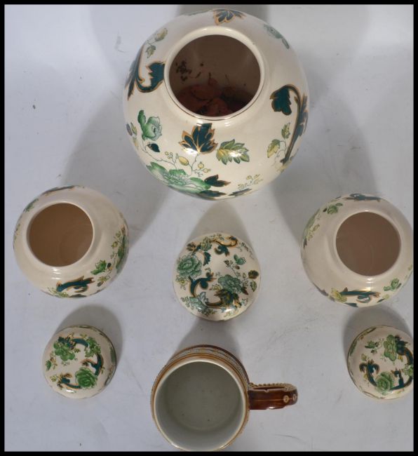 A collection of Masons Chartreuse pattern ceramics to include ginger jars of varying sizes and a Villeroy & Boch stein. Highest measures 24 cm.