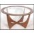 A 1970's G-plan teak model 8040 'Astro' coffee table, with inset circular glass top over stylized strut supports. Measures 45cm x 37cm diameter.