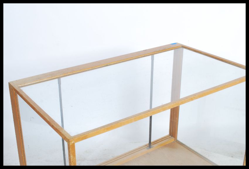 A vintage mid century shop Haberdashery display counter. Of smaller proportions with open back and raised on squared legs