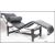 After Charles-Édouard Jeanneret better known as Le Corbusier (1887-1965) and Charlotte Perriand (1903-1999) for Cassina. An 'LC4' type chaise lounge, originally designed in 1928. Made from a chromed tubular metal construction, a cast base and black vinyl leather top padded cushion, 75.7cm high, 155cm long.