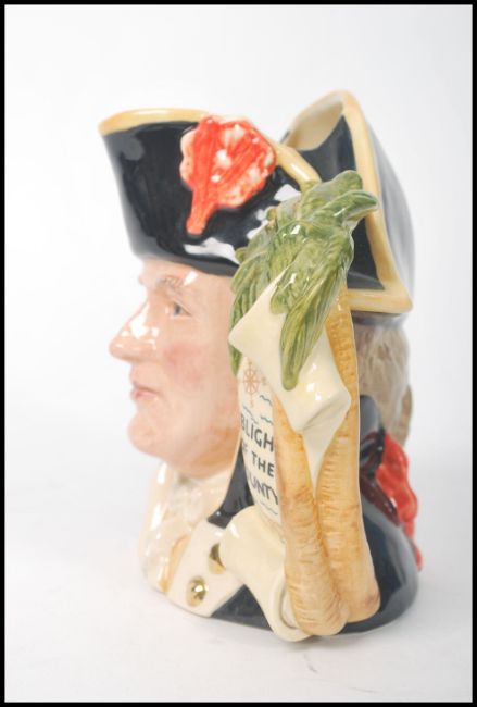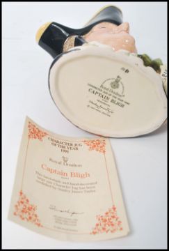 A Royal Doulton large character jug Captain Bligh D6967 with certificate and box. Character Jug Of The Year 1995. Measures 18cms high. Note; from an extensive private collection of Royal Doulton. The vast majority of items are free from any damage or restoration, and are in great condition. Buyers are reminded for the need to satisfy themselves as to condition of individual lots prior to bidding as condition on some, will vary.