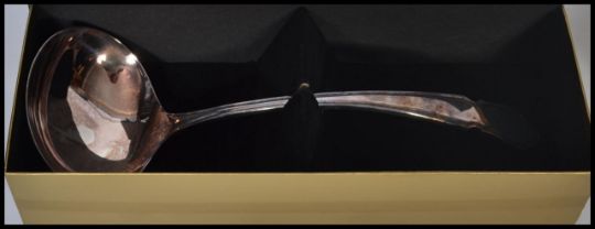 A 20th century silver plated tea service together with a gallery silver platted tray, sugar shaker and boxed ladle. Widest measures 19 cm and 16.5 cm high.