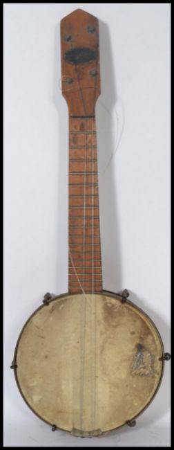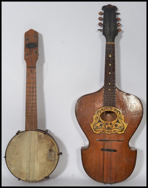 A vintage 20th century Broadway Banjolele musical instrument along with a 19th century believed Italian Mandolinetto. Please see images. Measures 64 cm high.