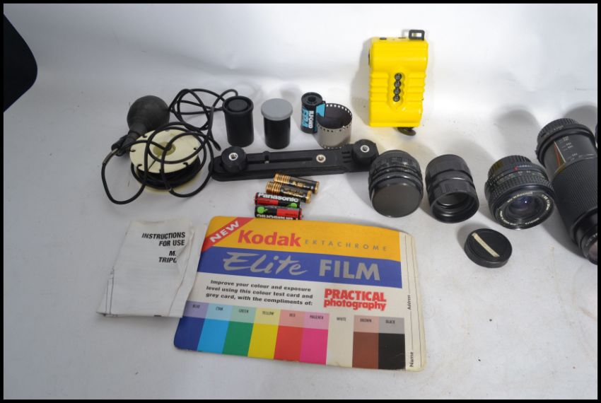A vintage 20th century Minolta X - 500 35mm camera and accessories to include several lenses and a 35mm four  4 lens Lomography Super Sampler camera.