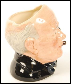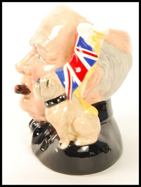 Royal Doulton Character Jug - Large, Character Jug of The Year 1992 ' Winston Churchill ' Bulldog Handle. D6907. Designer Stanley J. Taylor. Issued 1992 Only. Note; from an extensive private collection of Royal Doulton. The vast majority of items are free from any damage or restoration, and are in great condition. Buyers are reminded for the need to satisfy themselves as to condition of individual lots prior to bidding as condition on some, will vary.