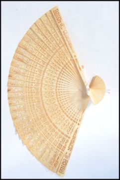 A 19th century Chinese ivory fan having 30 internal leaves / panels having pierced star and symbol decoration. Measures 20.5 cm long.