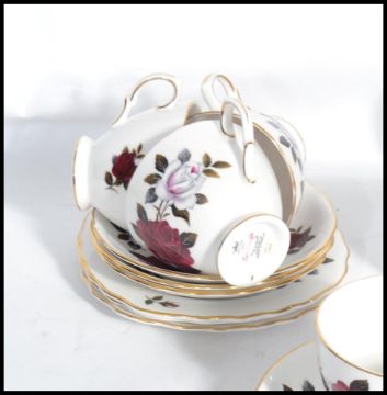 A vintage mid 20th century Colclough 12 person tea service in a floral pattern consisting of cups saucers and sides plate along with three Gainsborough trios.