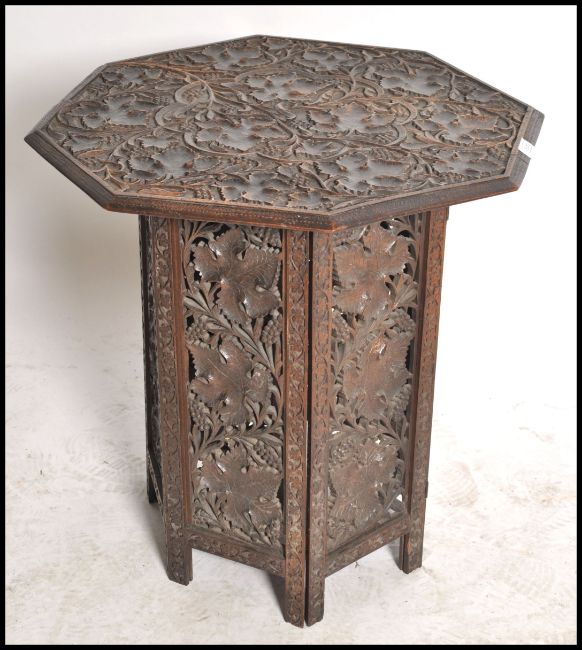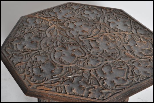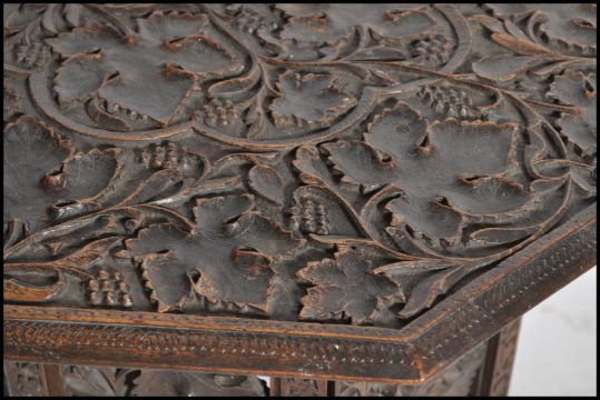 A 19th century black forest carved oak folding table of Octagonal form having carved leaf design to the top with stunning pierced folding base
