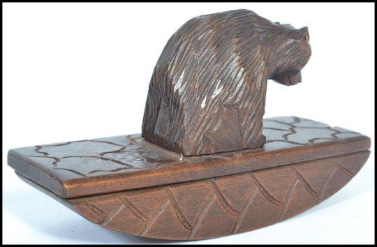 A 19th century Blackforest carved blotter in the form of a bear with shaped blotter base. Measures 15.5 cm wide.