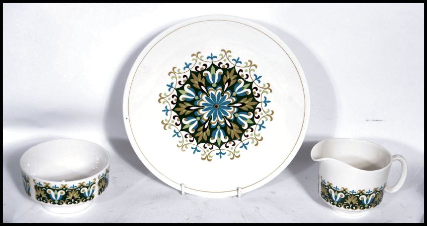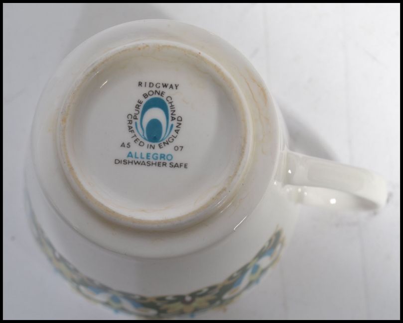 A retro part tea service by Ridgeway in the Alegro pattern, consisting of cups, saucers, creamer, sugar bowl etc.
