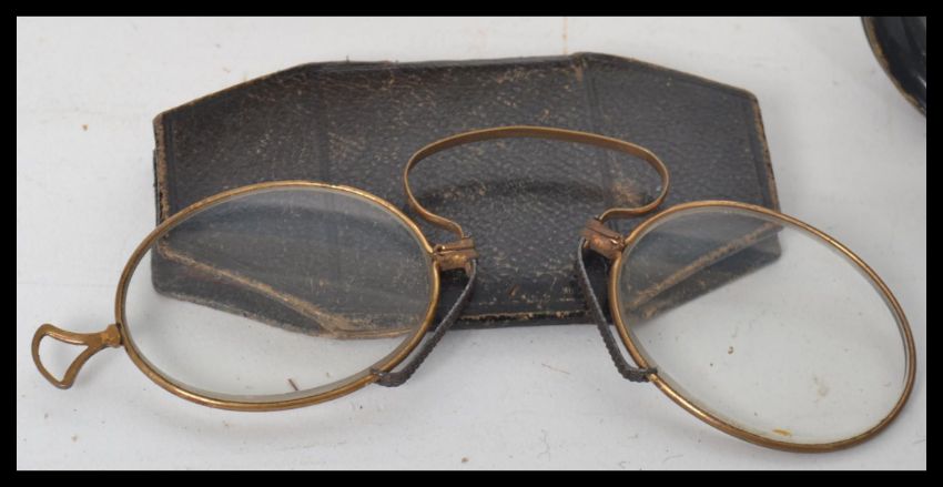 A stunning Blond tortoiseshell / faux tortoiseshell trinket pot in the form of a Grand Piano together with a pair of early 20th century faux tortoiseshell folding glasses / spectacles together with a pair of cased opera glasses with a Bristol retailer to the body and other items please refer to images.