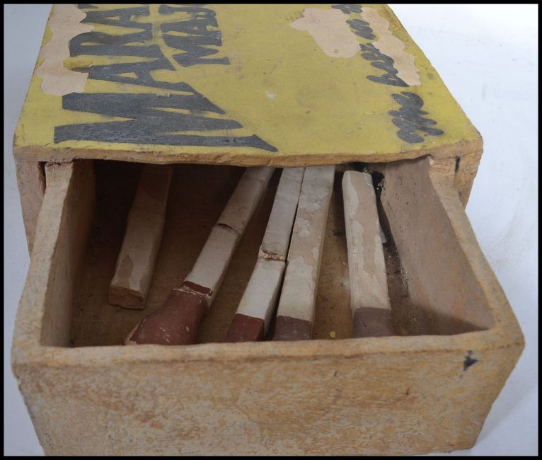 A fabulous oversized advertising piece for Marathon Major safety matches, the oversized display being constructed from clay. Measures 10 cm high, 38 cm wide and 21 cm deep.