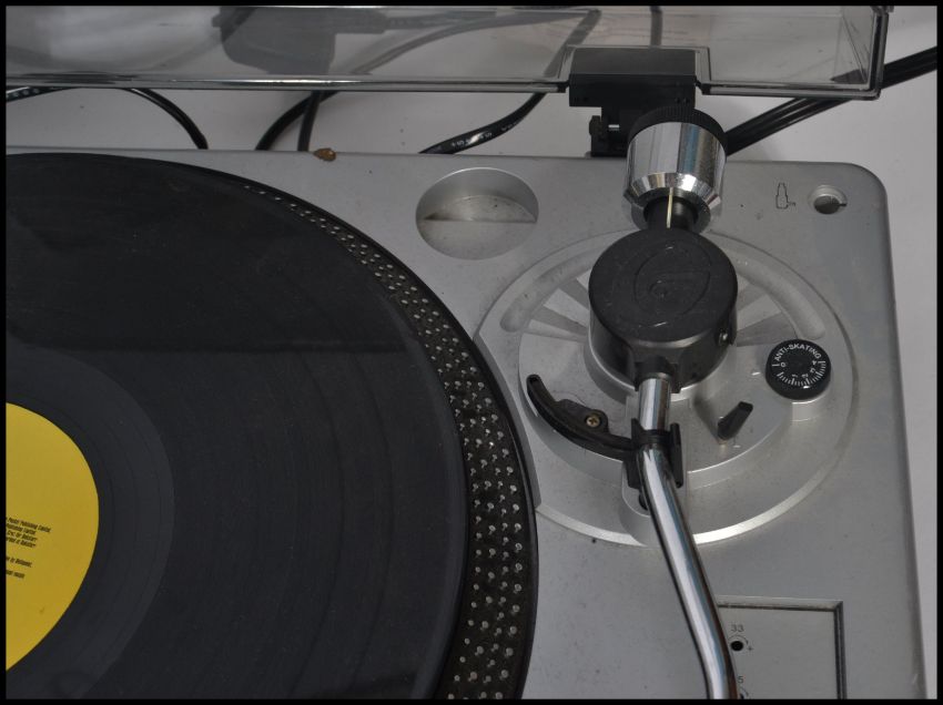 A pair of Gemini XL - 200 mixing record belt drive turntable decks together with a Gemini PMX 60 Stereo Preamp mixer. Mixer measures 30.5 cm high