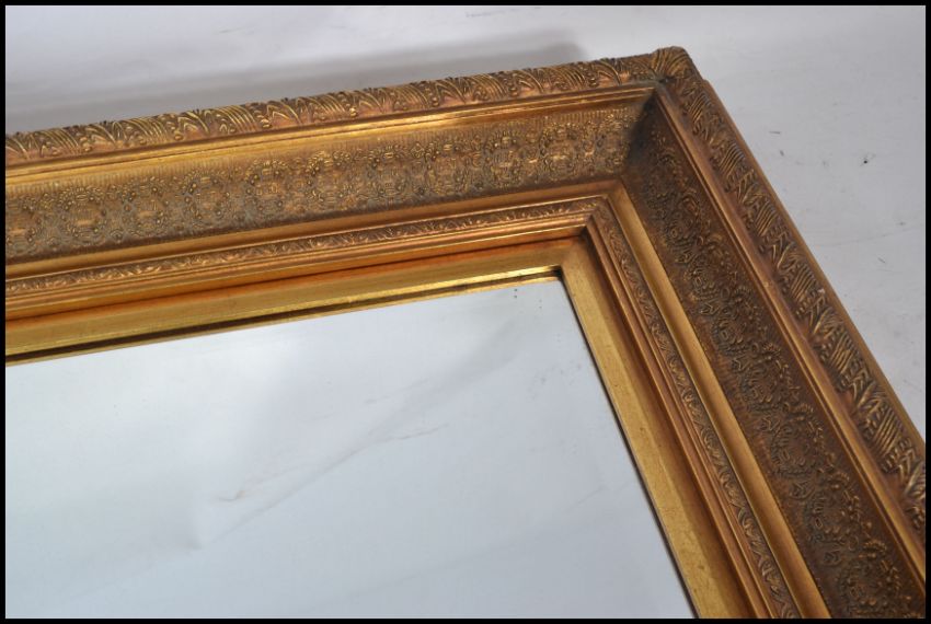 An early 20th century wall mirror having an ornate gilt stepped frame. The central bevelled glass panel of rectangular form.