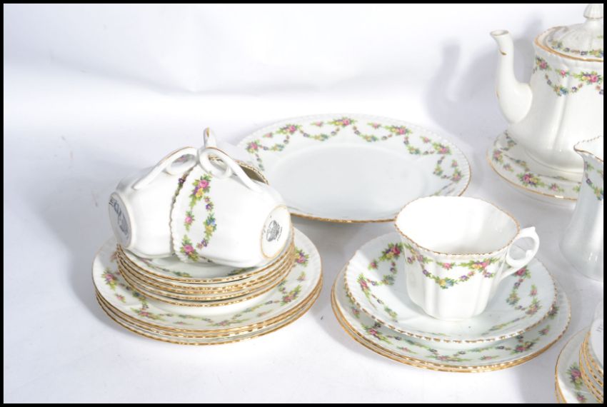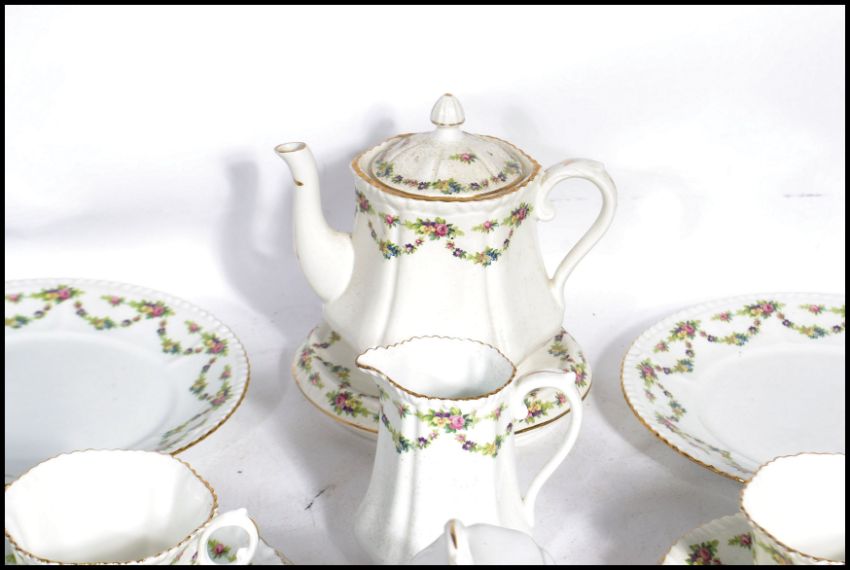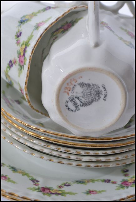 A vintage early 20th century china tea service by Phoenix Ware having a chintz pattern. The service comprising teapot, creamer, sugar, cups, saucers and plates.