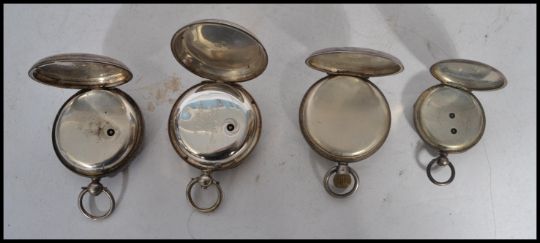 A group of four vintage early 20th century silver pocket watches to include a La Trobe , 1582 , AWW Co Waltham Mass and another. Please see images.