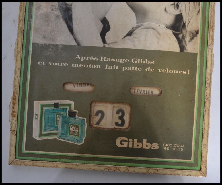 A vintage retro 20th century advertising point of sale French Gibbs perfume perpetual calendar. Measures 42cm h x 29.5cm wide.