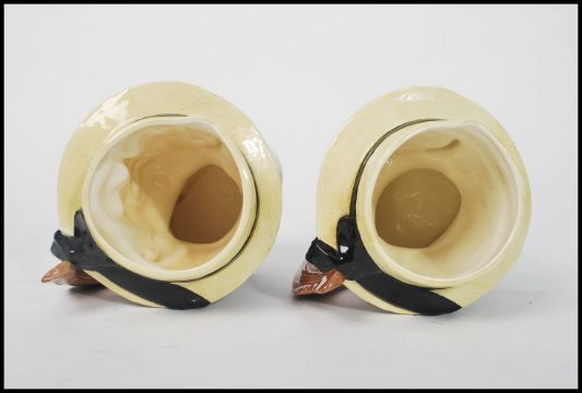 A pair of Royal Doulton large character jugs, The Gondolier. D6589. The handles modelled as gondoliers. Measures 20cm high. Note; from an extensive private collection of Royal Doulton. The vast majority of items are free from any damage or restoration, and are in great condition. Buyers are reminded for the need to satisfy themselves as to condition of individual lots prior to bidding as condition on some, will vary.