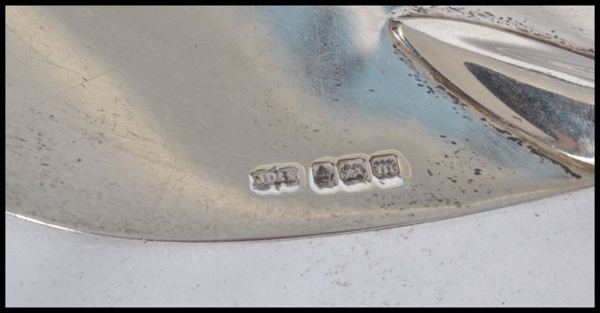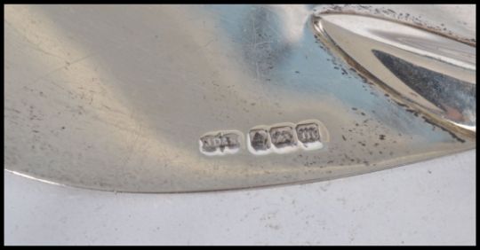 A silver hallmarked presentation trowel having an ebonised handle. Unengraved. Measures 32 cm long.