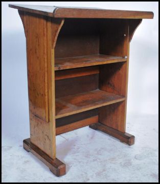 A good large believed 19th century carved oak Church lecturn reading stand. The top with angular top and reading ledge set over panelled base. Measures 98cm x 75cm x 56cm.