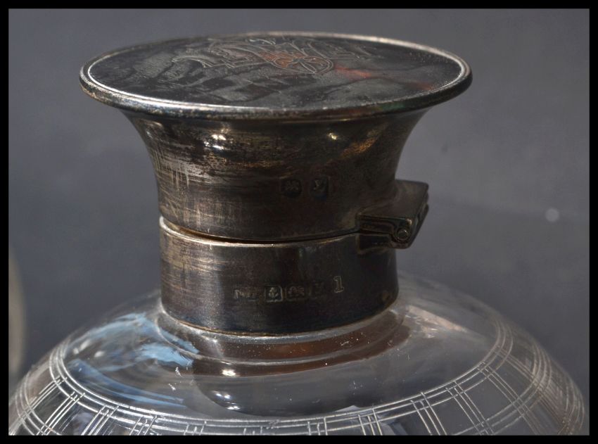 A stunning 20th century Edwardian silver hallmarked and tortoiseshell dressing table set containing mirror, brush, comb and a pair of matching perfume bottles, each piece with a matching monogram set within the tortoiseshell in silver. Please refer to images. Measures 26 cm long.