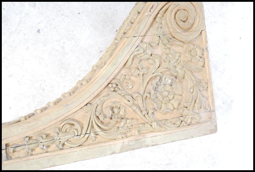 An 18th / 19th carved wall bracket / clock bracket support moulded in relief with foliate and floral swags. Measures: 80cm high.