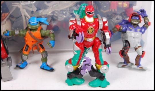 A large collection of loose TV / film related various branded action figure to include; Hasbro Transformer figures, Toy Story's Buzz Lightyear, Slinky Dog, Jessie, Teenage Mutant Nija Turtles & many others.