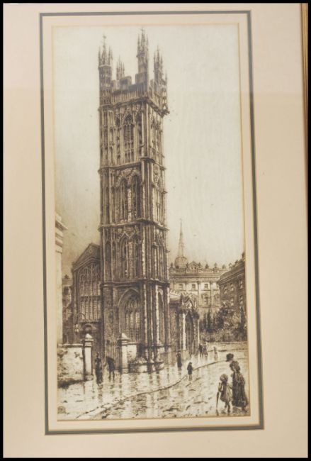 A 19th century lithograph framed and glazed print of St Mary Redcliffe Church, Bristol in the by Charles Bird together with other prints of Bristol to include Hotwells, Pump Room, Christmas Steps, Drawbridge all after G Lewin 1922