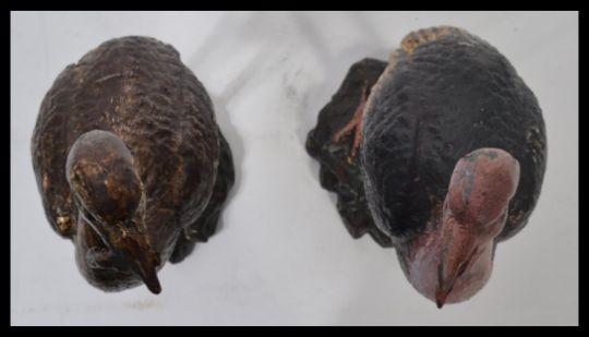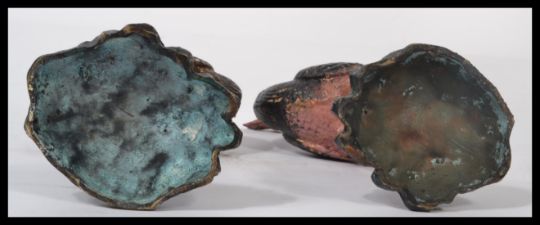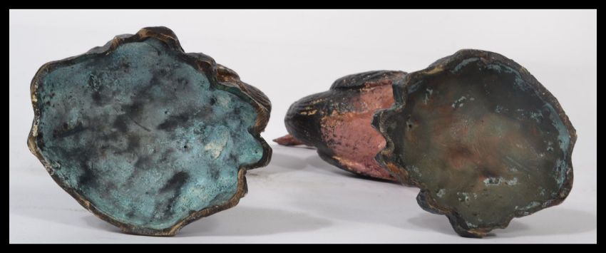 A pair of 20th century bronze cast figurines - sculptures of Ostrich to include a male and a female in the manner of Bergman. Measures 30 cm high.