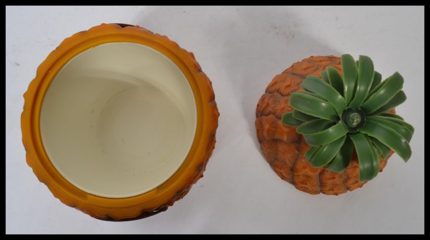 A vintage retro 20th century novelty Britvic ice bucket in the form of a pineapple. Fixed name plaque to front. Measures 26 cm high. In good clean condition with some minor wear to the leaves.